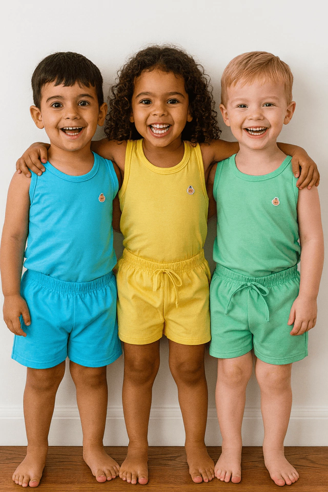 Conforto: O algodão é naturalmente suave e respirável, ideal para crianças, enquanto o elastano no short oferece flexibilidade, permitindo movimentos livres.
